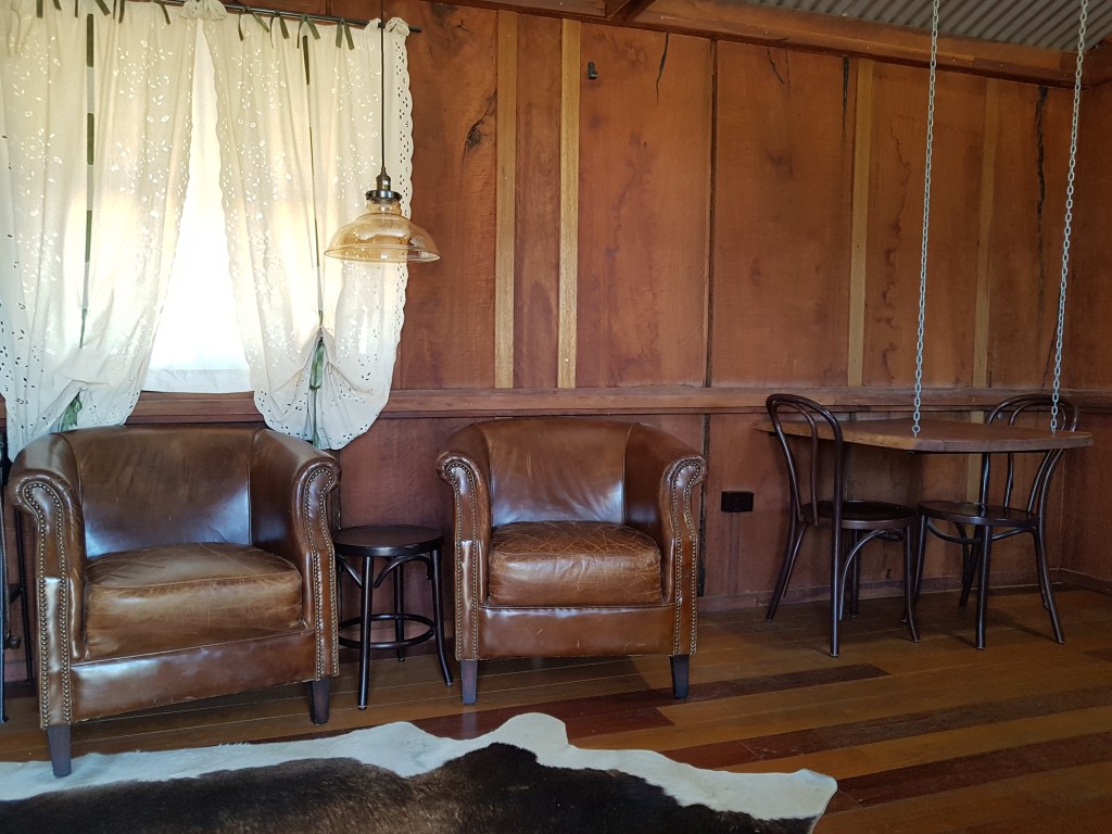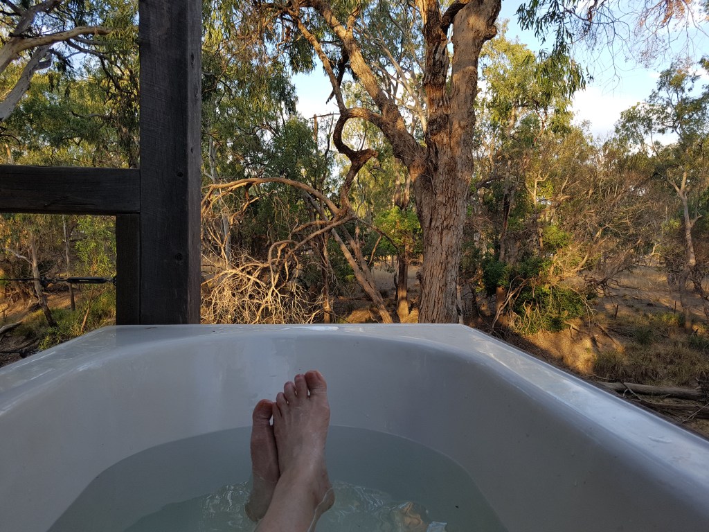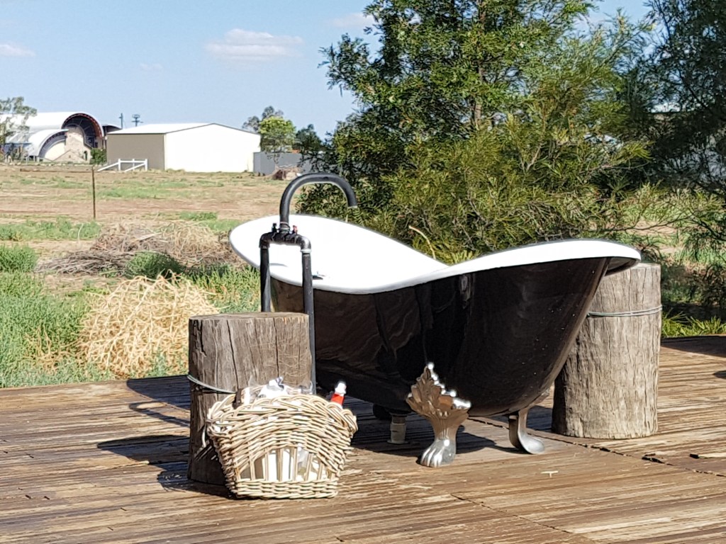 Heading further into Queensland’s South West region, we travel along the Warrego Highway via Dalby to Chinchilla, famous for its annual Melon Festival. We are staying the night at The Laurels B&B in one of their creatively rustic waterfront cabins. No pub this evening, but the old bath on the deck is the perfect place to relax and take in the river views as the light fades and our first day draws to a close.