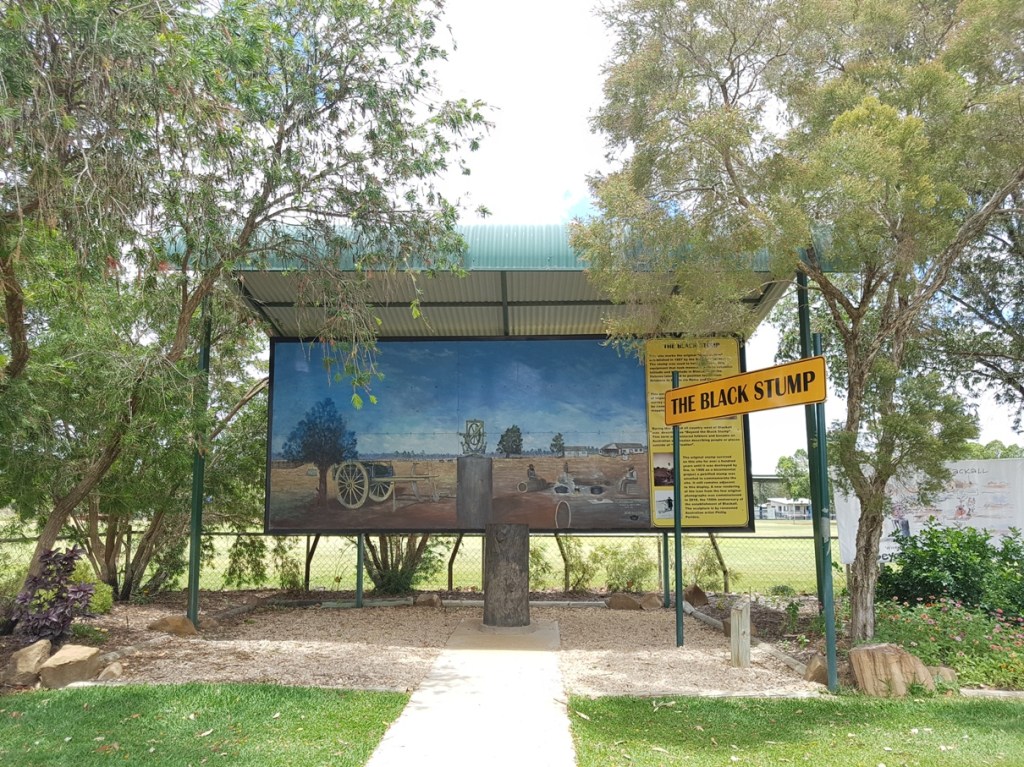 It isn’t easy locating it though. This historic site of the original 1887 blackened tree stump-come-surveyors peg, humbly resides in a metal shelter shed in a residential street, behind the Blackall State School. And there are two stumps! A petrified wood memorial stump erected in 1988 to commemorate Australia’s bi-centenial, and a newer sculpture by Phillip Perides, commissioned in 2018, taken from drawings found of the original, which was destroyed by fire. Not exactly as I’d imagined it, but it is interesting to read its history and I can tick it off the old bucket list. 😀