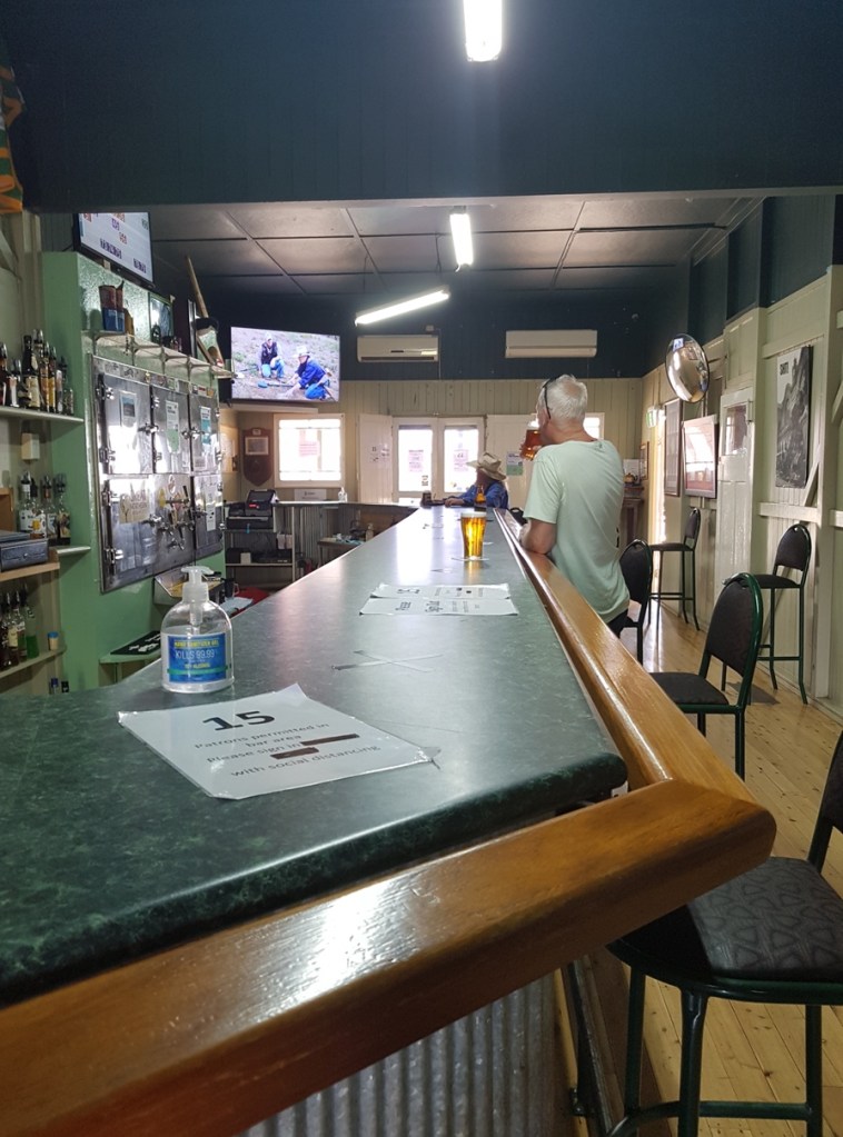 We arrive into Nindigully (pop 9) at 10am, right on opening time at the Nindigully Pub, and then do something neither of us have never done…..I had a beer at 10 o’clock in the morning and Geoff (illustrious driver) had a capuccino at the bar! 🍺☕