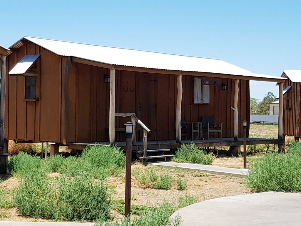 We are staying the night in Windorah in a tiny little cabin at Coopers Cabins and are sweltering in the 40°+ heat as the air conditioner struggles to cool our room. 🥵🌡