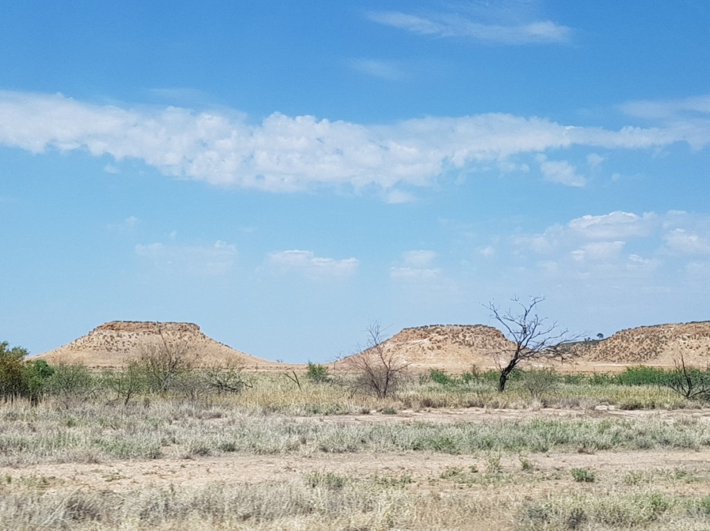 It is an ever changing landscape of Mulga trees and red earth, spinifex country dotted with mesas (jump ups) in the distance.