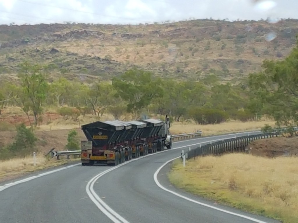The road trains are immense in size, length and stature and their woosh rocks the car like a jet when they pass us by 🚛🚌🚌🚌💨💨