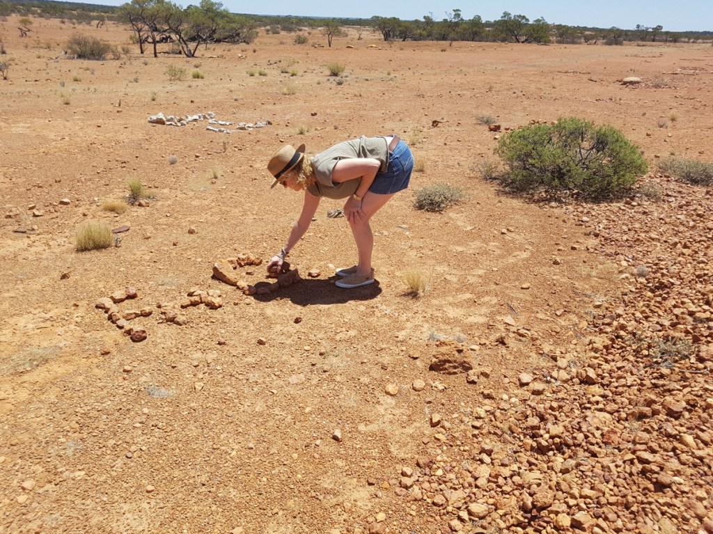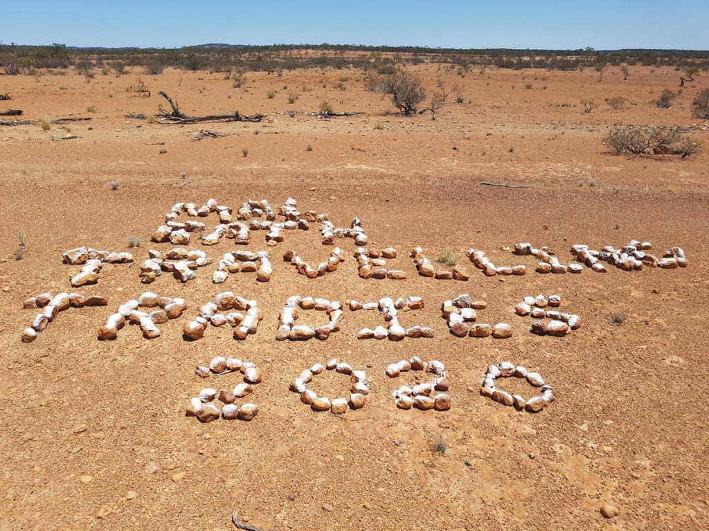 It is hot today. 42°! But we have to stop and leave our names in the Stonehenge Address Book, an activity which was started many years ago when a stranded local postie left a message using rocks. Nowadays, it’s a fully fledged ‘address book’ where towns’ and people’s names have been written in stones over the years. Of course we must add ours! ✍