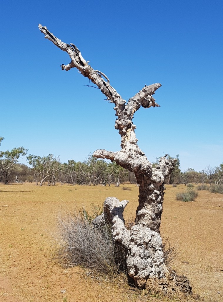 On our way out of Windorah we drive via the Old Courthouse to check out were beloved local resident ‘Tarpot’ now lives, and then took the 12 km Nature Drive, to learn the names of a lot of the tough-as-guts trees we see so often along the roads lining Cooper’s Creek Floodplain.