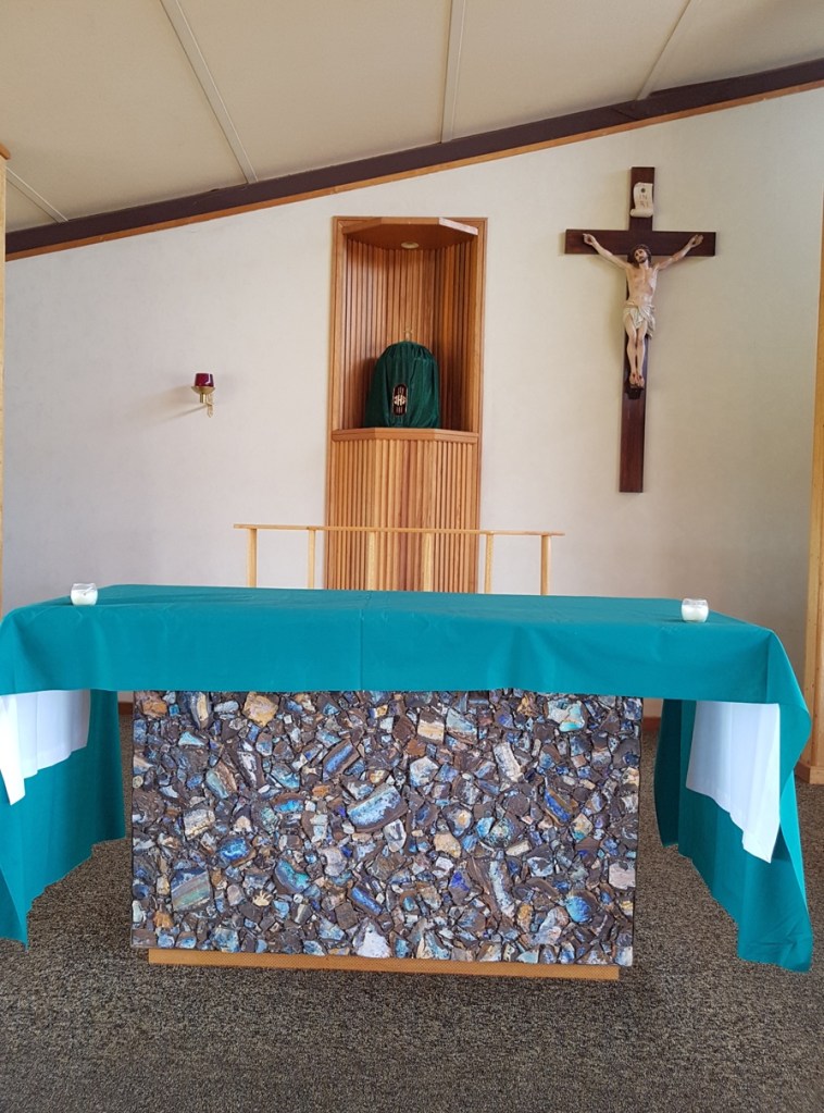 Unfortunately, all the opal shops were closed here (due to COVID and travelling during the off season) so we went fossicking instead…and found our own 😁 We also visited the beautiful St Finbarr’s Catholic Church to view its amazing opal-embedded altar, lectern and font ⛪