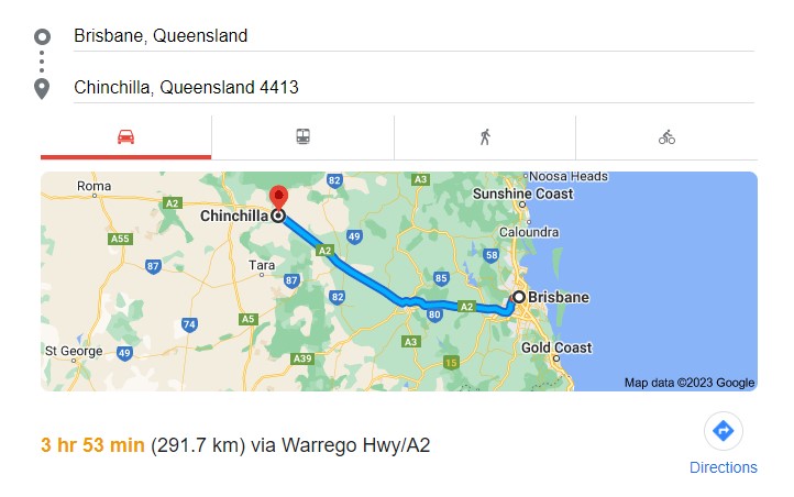 Brisbane to Chinchilla (292km – 4hr) via Laidley