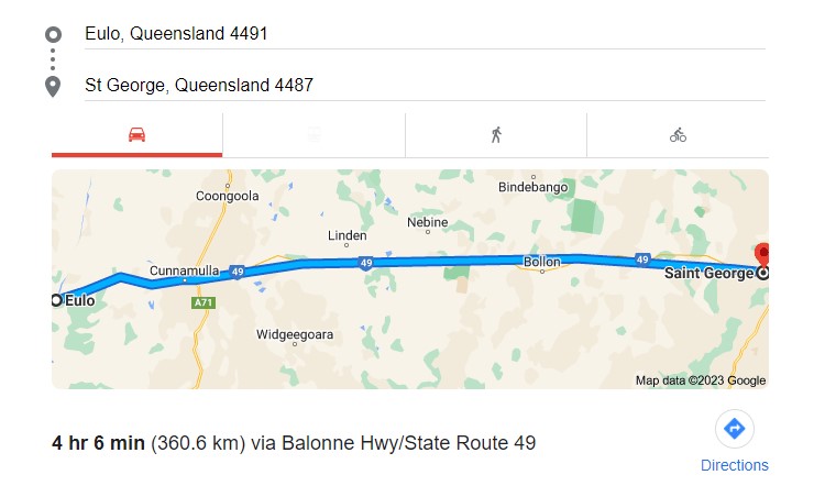 - St George to Nindigully (46km – 30 m)