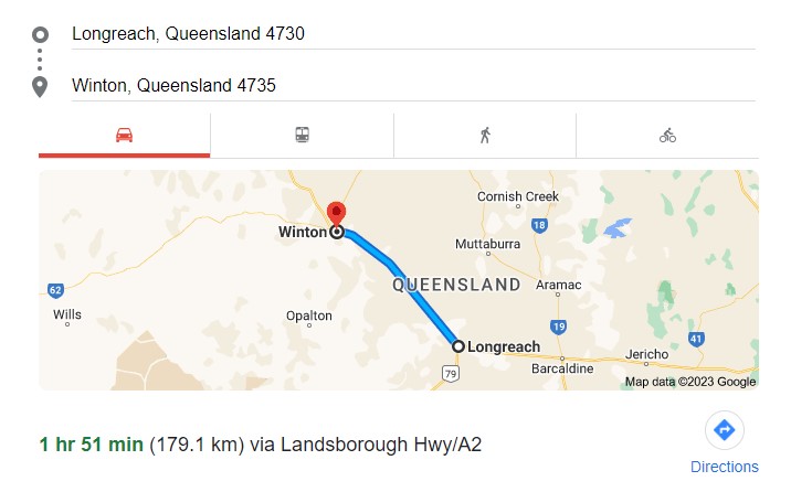 - Winton to Kynuna (165km 1h 45m)