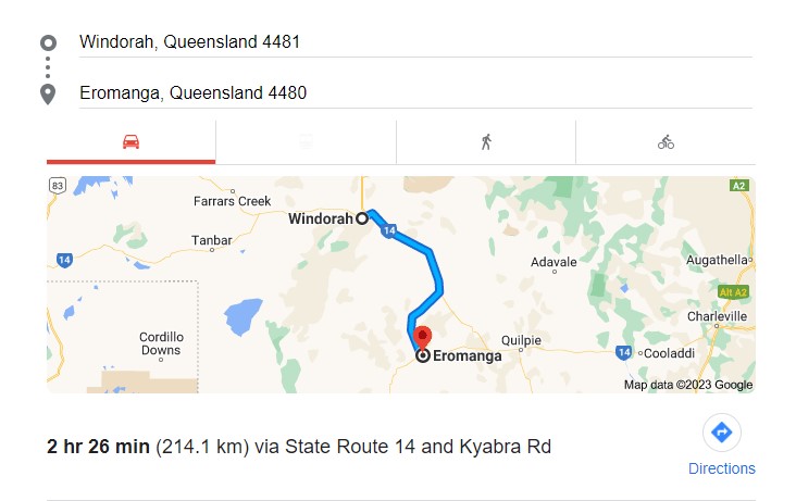 - Chinchilla to Roma (188km – 2hr)