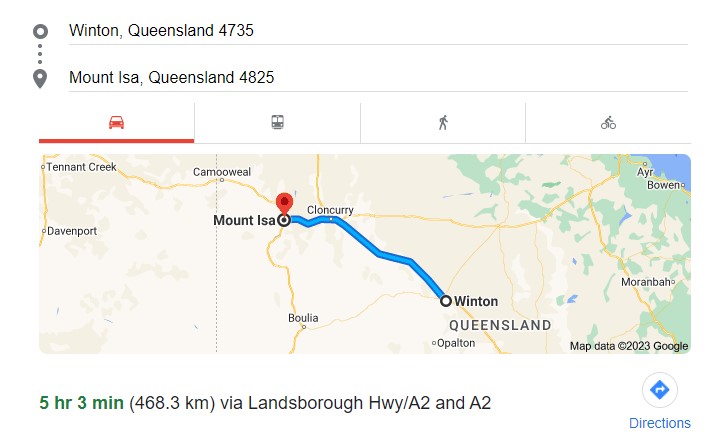Winton to Mt Isa (468km – 5hr) via Kynuna and Cloncurry
