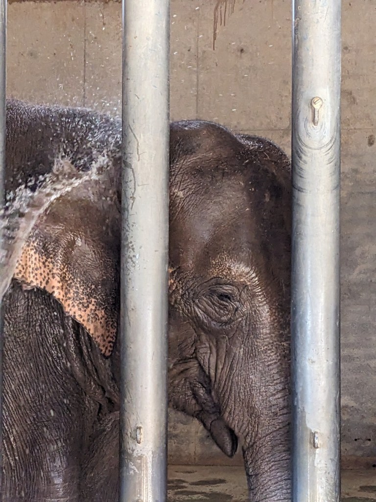 We are treated to a personal keeper talk while watching a white rhino, and then a mother and son black rhino, chow down on their branchy breakfasts. We learn about the differences between these two magnificent breeds, their unique characteristics, and their zoo histories.