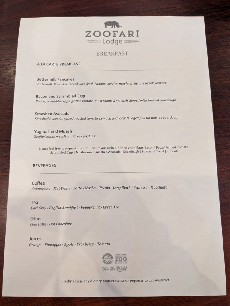 The Zoofari Lodge complex sits just past the actual Western Plains Zoo entrance, and on arrival we are given our itinerary for the next 24 hours and shown to our Meerkat Lodge. We immediately settle onto the deck and watch the insanely African, wildlife scene before us. We are in love!