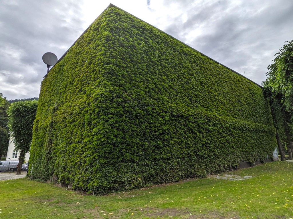 Not far from Bryggen (back towards the cruise ship terminal) lies the fortress of Bergenhus Castle, the royal residence from the 13th century. We explore the castle grounds and wander the parks and buildings, discovering a WWII bunker completely camouflaged in ivy.