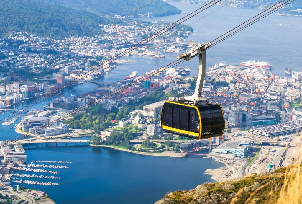 Ulriken Cable Car (643m) – Take the Ulriken Cable Car up to the highest of Bergen’s 7 mountains in Norway’s largest gondolas. Enjoy spectacular hiking, or Nordic food with stunning views at Skyskarperen Restaurant, or stop off for coffee at Café at Mount Ulriken. Get there by Ulriksbussen, Light Rail or car.
