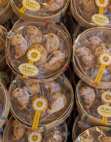 It is one of the largest fresh seafood markets in Thailand and runs for 100 metres along each side of the Maeklong Railway’s train tracks.