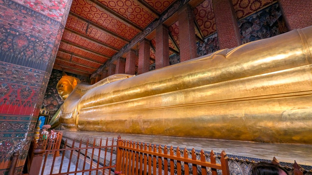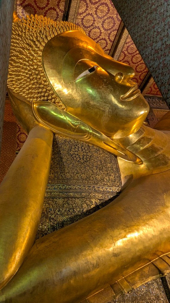We are now back on the ferry and heading to Wat Pho, one of Bangkok’s most ancient temples dating back to the 16th century. It is home to more than one thousand Buddha statues, as well as the giant 46 m Reclining Gold Buddha.